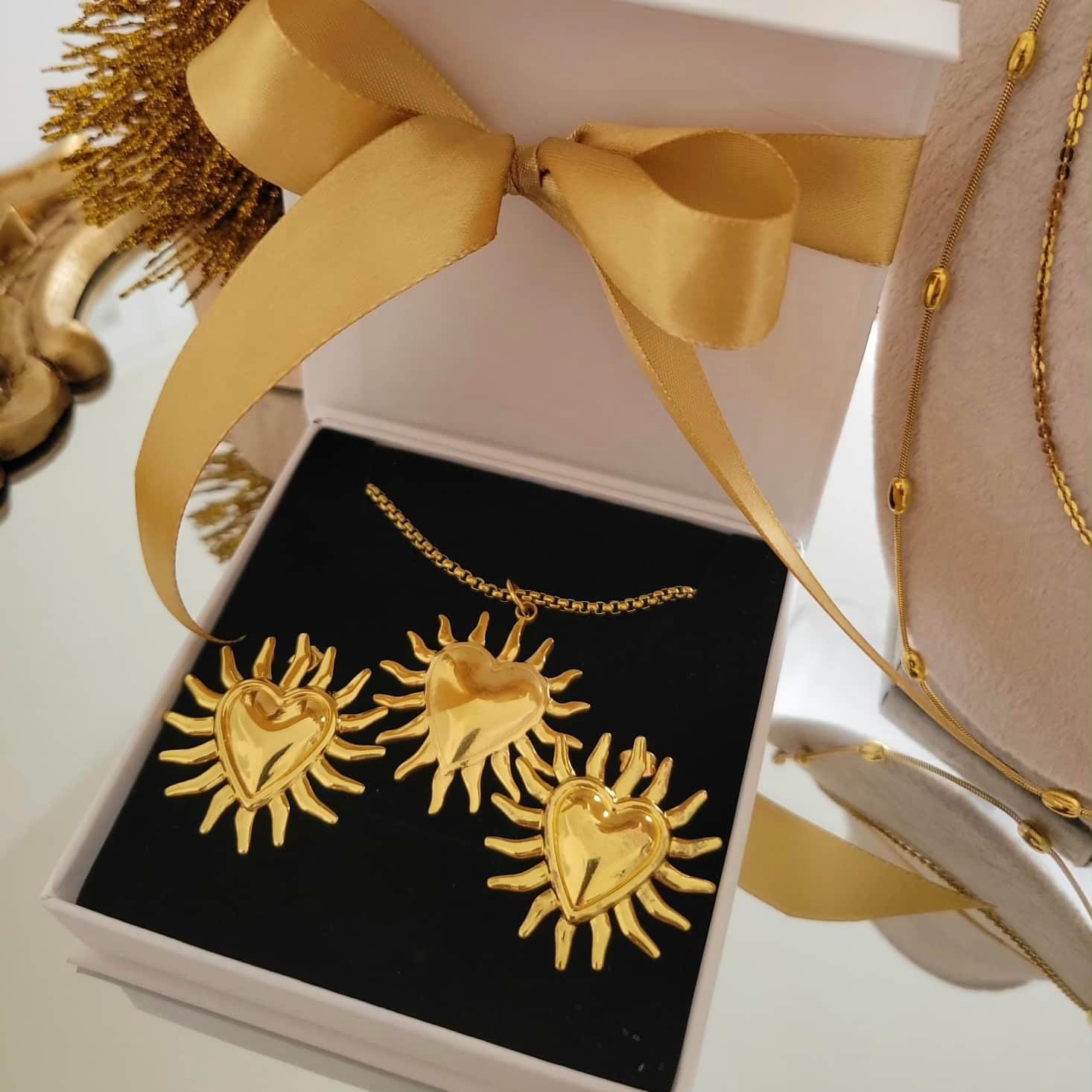 - Heart necklace and elegant gold-tone earrings, a romantic and special gift.